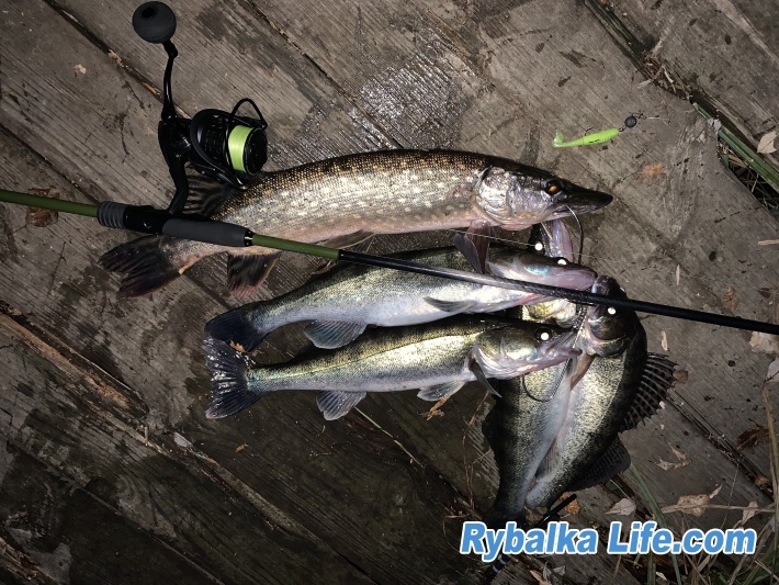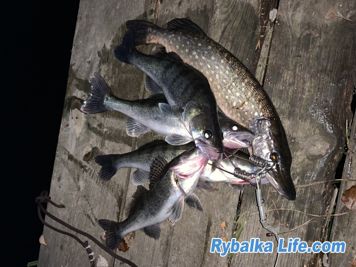 Итого: 4 «клыкастика», один срез, 1 окунь,и 1 щучка!