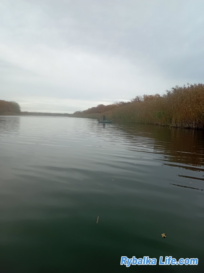 Поймал еще две щучки на раттлин и полное затишье. Любуюсь осенним пейзажем, а в душе это синдром «удачи». Дошел до поворота, начался широкий мелководный участок без признаков жизни. Может в августе, сентябре и можно было половить на поверхностные приманки, но не сейчас. Щука уже сдвигается ближе к руслу, к ямам. Посмотрел на часы, обед. Разворачиваюсь и гребу против ветра назад к машине. Еле дошел, руки болят, физкультура еще та. Лучше тренажерного зала.