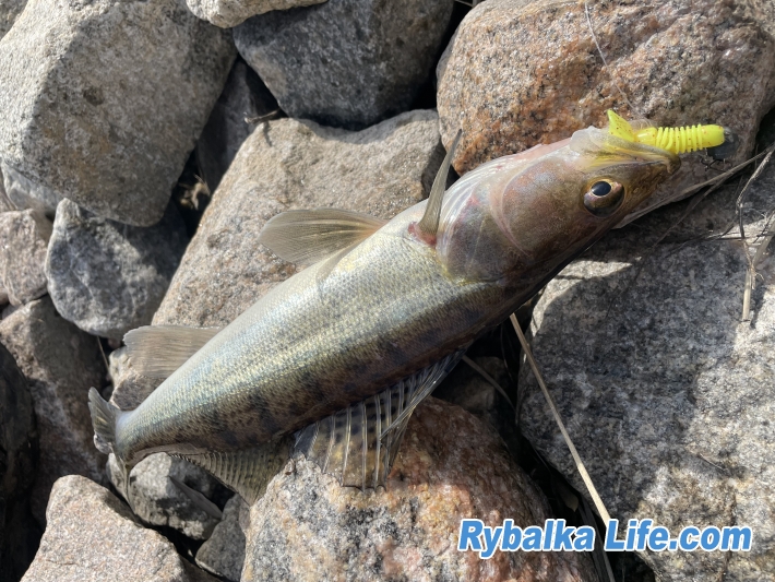 И на отмели возле камыша товарищь ловит первого судака в своей жизни. Сам того не понимая как, но он его поймал.